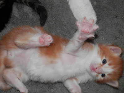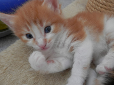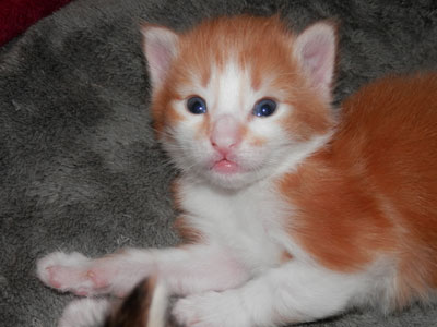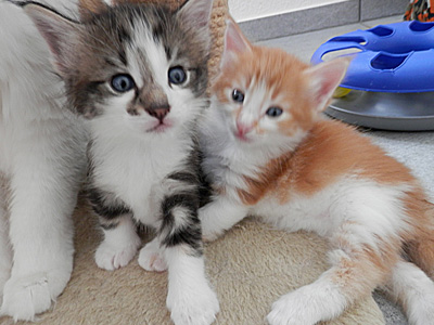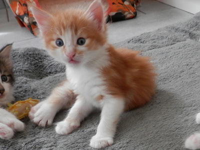 Farbe: rot tabby gestromt mit weiss (Bicolor) (d 03 22) Mutter: S*Mar'Michels Gavarani Gold (f 03 22) Vater: S*Segersjös Leezak (ns 03 22) Züchter: Ursula Habegger & Ivo Stadler, Schattdorf UR