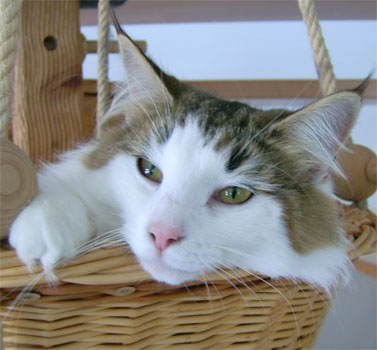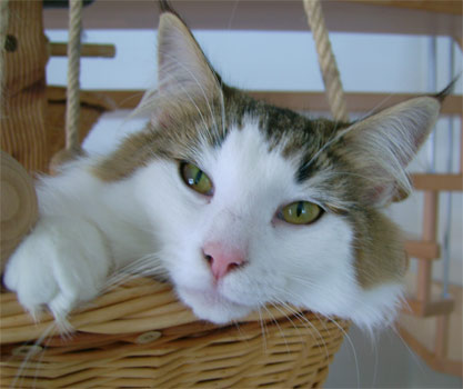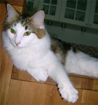 Queen Mary ist eine wunderschöne junge Norwegische Waldkatzendame (geb, am 02. Juni 2007) mit einem superlieben Charakter. Sie ist verschmust, sehr sozial und an Hund gewöhnt. Leider hatte "Queeny" am 20. Mai 2009 eine schwere Geburt, weshalb wir sie kastrieren werden. Schade, ist war so eine tolle und liebevolle Mama; aber wir möchten das "Risiko" für Queeny nicht noch einmal eingehen. Queeny möchte aber nicht alleine sein. Vorzugsweise haben Sie bereits Zuhause eine oder mehrere Katzen. Sie können auch ihre Schwester Pippi oder den Kastraten Online mit Queeny zusammen in ihr Zuhause aufnehmen. An Freilauf ist sie nicht gewöhnt und deshalb auch nicht erwünscht. Queeny ist aber sehr gerne draussen im geschützten Aussengehege. Ein gesicherter Balkon oder Terrasse wäre deshalb wünschenswert. Zögern Sie nicht und besuchen Sie uns um unsere Queeny und die gesamte Efibach-Bande kennenzulernen. |