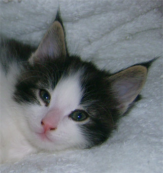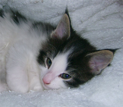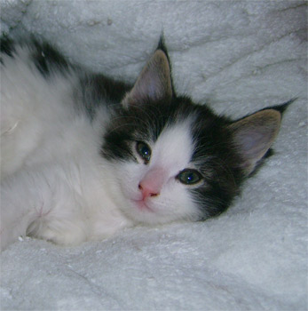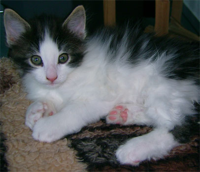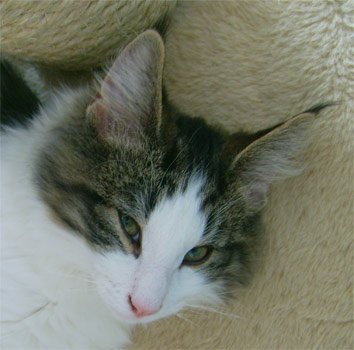 geb. am 03.11.2008 Farbe: schwarz tabby gestromt mit weiss (Bicolor) (n 03 22) |