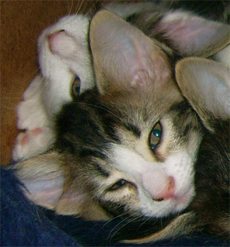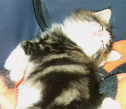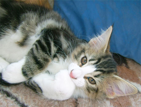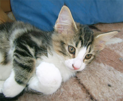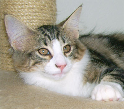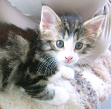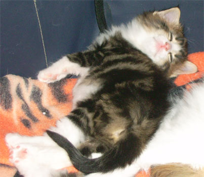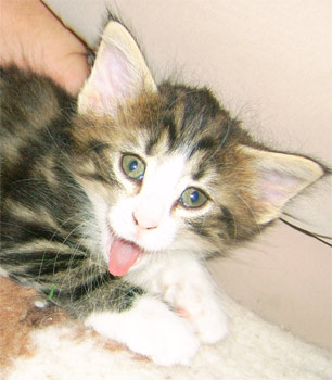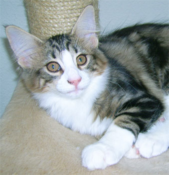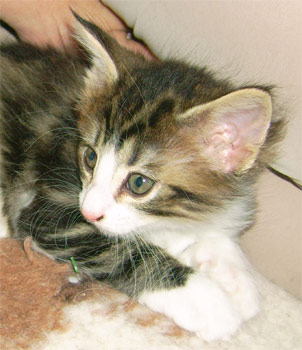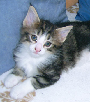 geb. am 03.11.2008 Farbe: schwarz tabby gestromt mit weiss (n 09 22) |